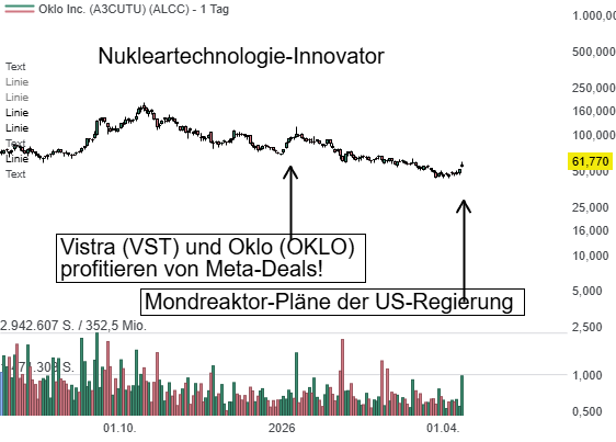 Die Aktien von Nuklear- und SMR-Spezialisten erleben eine kräftige Rally, nachdem die US-Regierung konkrete Schritte für den Einsatz von Kernreaktoren im Weltraum und auf dem Mond vorgestellt hat. Hintergrund ist eine Initiative von Donald Trump, die vorsieht, bereits ab 2028 erste Reaktoren im Orbit zu stationieren und bis 2030 auch auf dem Mond einzusetzen. Die neue Leitlinie der Behörden setzt...