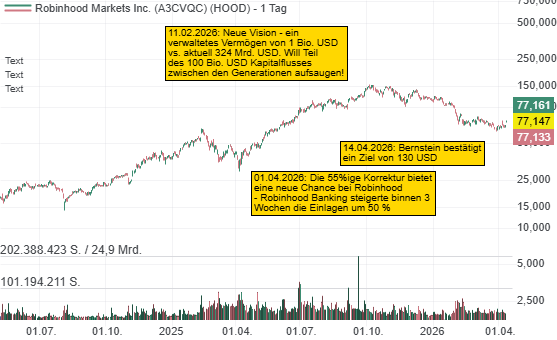 Aktuell arbeitet die ROBINHOOD-Aktie an einer Bodenbildung sowie einem Swing Low im Kontext des langfristigen Aufwärtstrends seit 2024. Die Story von Robinhood ist intakt – die Transformation zur Hausbank der Generation Z und zur Super-Finanz-App. Banking-Durchbruch und operative Hebel Das Team um CEO Vlad Tenev liefert derzeit operativ ab, wie man jüngst meldete. Ein zentraler Meilenstein...