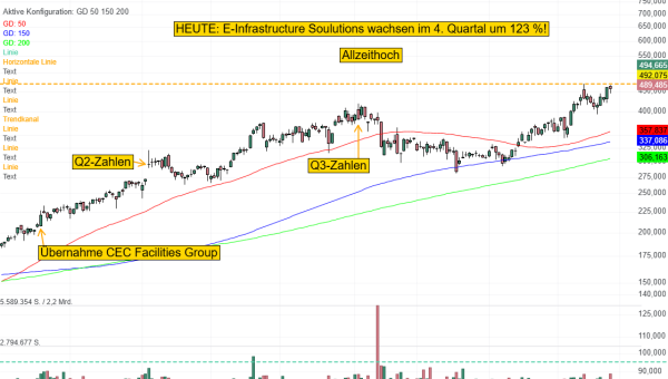 Sterling Infrastructure konnte seine Umsätze um 32 % auf 689 Mio. USD ausbauen und den Gewinn um 58 % steigern. E-Infrastruktur erhöht den Auftragsbestand auf 2,58 Mrd. USD.