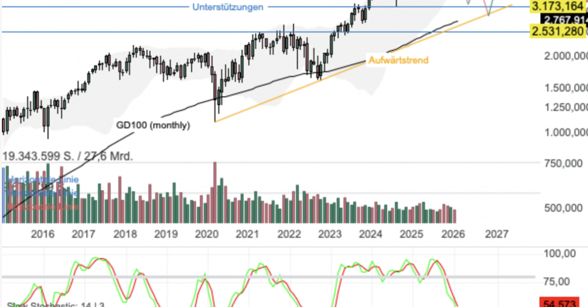 Aus charttechnischer Sicht befindet sich Booking Holdings innerhalb einer übergeordneten, starken Aufwärtsbewegung. Allerdings scheiterte die Aktie vor wenigen Monaten im Bereich von 5.885 USD. Nach Erreichen dieses neuen Allzeithochs folgten erste Gewinnmitnahmen. Diese verstärken sich im laufenden Monat in Form einer stärkeren Korrektur. Fällt die Aktie nun unter die zuletzt angesteuerte Unterstützung bei 3.911 USD, befindet sich die nächste Auffangzone bei 3.150 USD. In den nächsten Monaten könnte sich diese Zone zudem mit dem GD100 (monthly) verbinden. Diesen nutzte die Aktie in den letzten Jahren verstärkt als Sprungbrett für weitere Kursanstiege. Zudem wird diese Zone mit dem Aufwärtstrend verstärkt. In der Slow Stochastik ist ein Verkaufssignal aktiv, welches das untergeordnete Korrekturszenario unterstützt. Sollte die Aktie im Vorfeld über 4.650 USD ansteigen, befindet sich das nächste Kursziel beim aktuellen Allzeithoch.