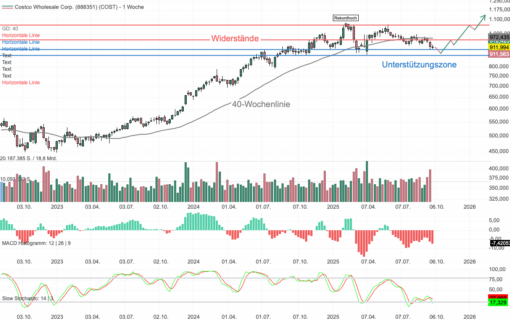 Aus charttechnischer Sicht befindet sich FedEx innerhalb eines jahrzehnte-langen Aufwärtstrend. Allerdings scheiterte vor einigen Monaten der Ausbruch über das vorangegangene Allzeithoch im Bereich von 300 USD. Das Risiko eines potenziellen Doppelhochs entsteht. Solange die Aktie unter 238 USD notiert, ist daher mit einer fortgeführten, untergeordneten Korrektur bis zur Zone zwischen 185 und 153 USD zu rechnen. Diese wird durch den GD200 (monthly) verstärkt. In diesem Bereich könnten sich langfristige Kurseinstiege unter Umständen auszahlen. Ich bleibe derzeit an der Seitenlinie und warte ab.