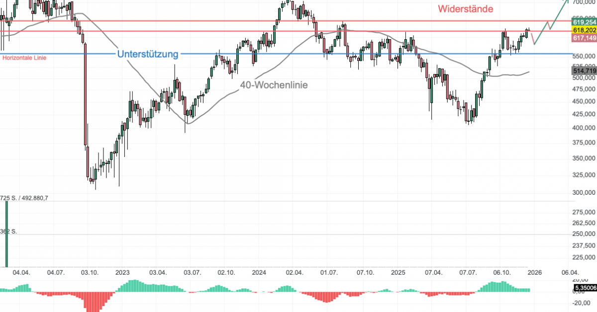 SalMar (YEP) hat im November starke Zahlen für das 3. Quartal vorgelegt. Die Aktie befindet sich seit September 2025 in einem Aufwärtstrend. Aktuell notiert der Kurs über der 40-Wochenlinie bei 618 NOK. Das Papier des Fischfarmers hat kürzlich die psychologische Marke von 600 NOK überschritten und gerade den nächsten signifikanten Widerstand im Bereich von 615 NOK überwunden. Ein wichtiger Widerstandsbereich liegt noch bei 646 NOK. Ein nachhaltiger Ausbruch darüber könnte weiteres Potenzial bis 720 NOK freisetzen. Der Slow Stochastik-Indikator befindet sich im überkauften Bereich, was kurzfristig auf eine Konsolidierung hindeuten könnte, bevor der nächste Schub erfolgt. Solange der Kurs über der 40-Wochenlinie bleibt, ist das bullische Szenario intakt. Sollte es zu Gewinnmitnahmen kommen, bietet der Bereich um 555 NOK eine erste solide Auffangzone.