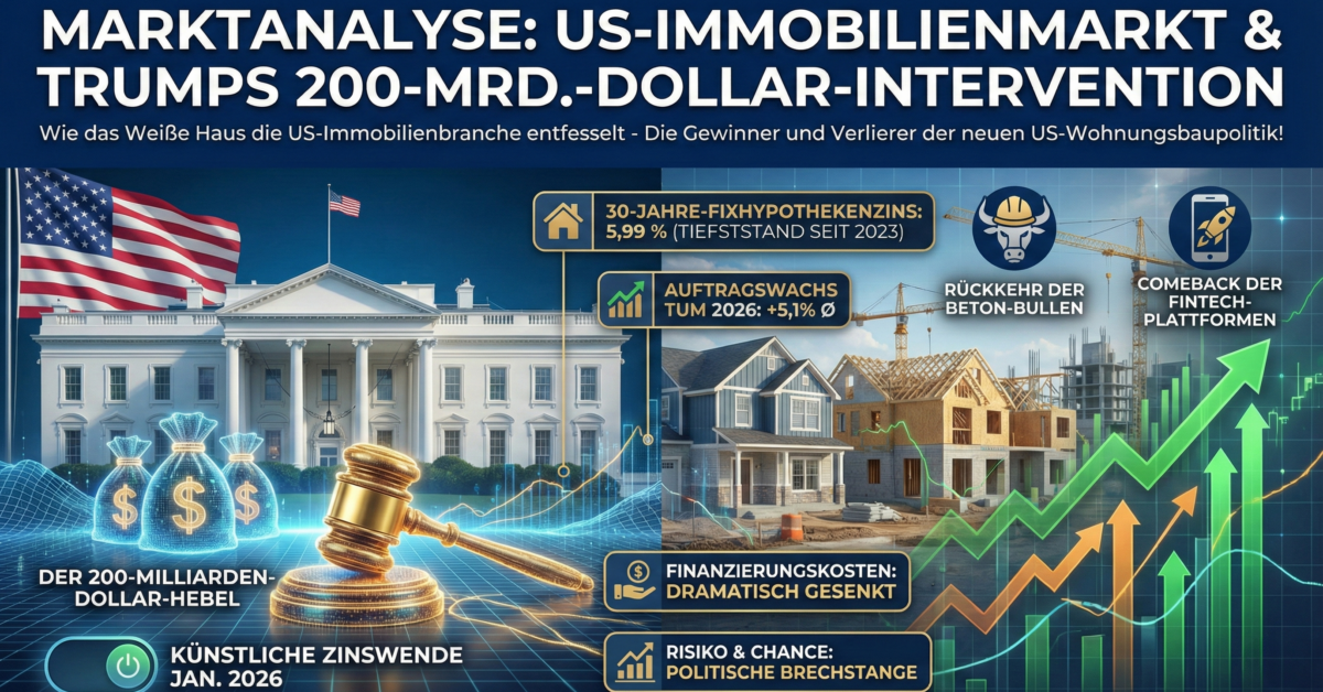 Die künstliche Zinswende Der Januar 2026 markiert eine Zäsur für den US-Immobilienmarkt , die weniger durch organische Marktkräfte als durch das sprichwörtliche Machtwort aus dem Weißen Haus ausgelöst wurde. Nachdem der Wohnungsmarkt über Jahre hinweg unter einer Kombination aus historisch...