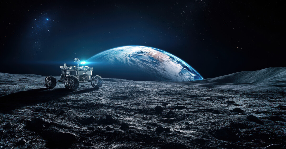 'post_title' => 'A futuristic lunar rover explores the moon\'s surface, illuminated by a blue light, with Earth prominently visible in the background, showcasing humanity\'s quest for space exploration.',