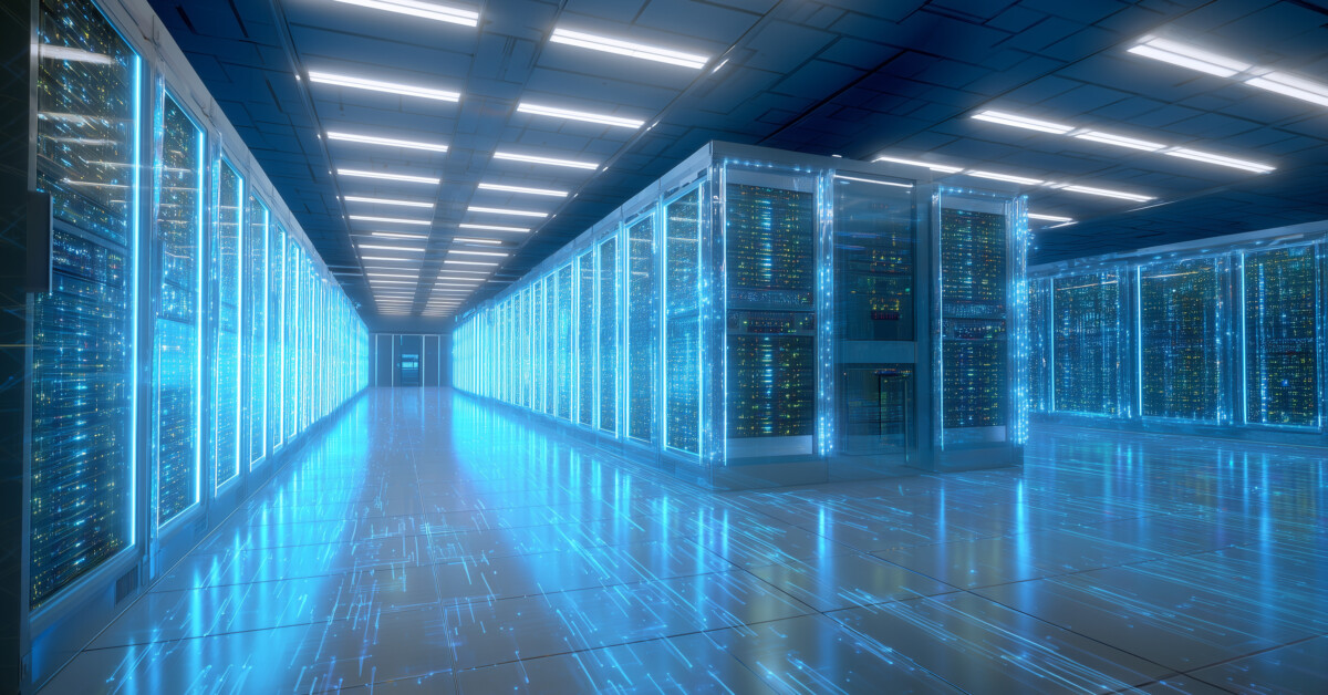 'post_title' => 'Corridor of illuminated servers in European supercomputer facility.',