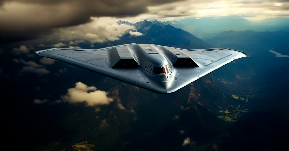 'post_title' => 'the flight of a B-21 Raider supersonic airplane in the sky above the clouds. Generative AI',
