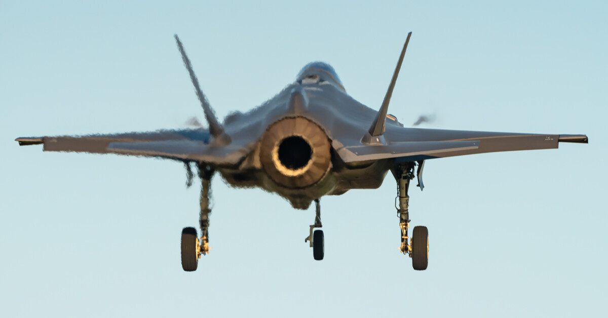 'post_title' => 'The back of a Lockheed Martin F-35 Lightning II fifth generation multirole fighter jet.',