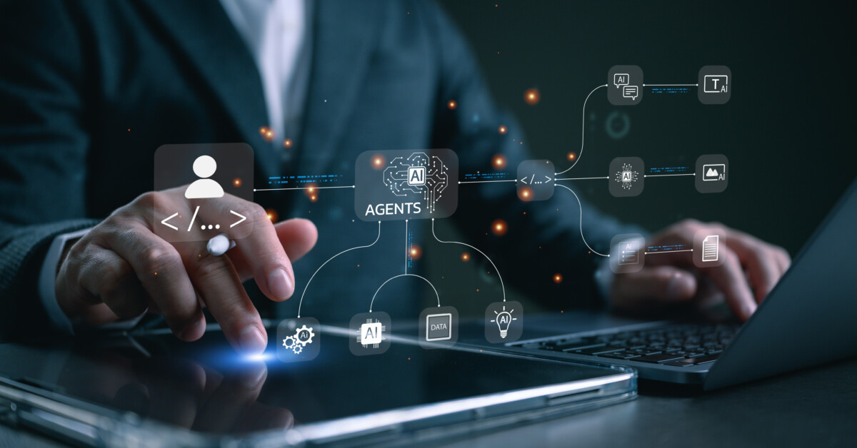 'post_title' => 'Business professional controlling AI agents workflow, connecting data, code, and communication tools to automate processes, enhance productivity, drive scalable digital business transformation.',