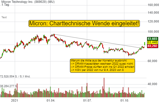 Die Aktie von Micron absolviert aktuell die charttechnische Wende. Dafür gibt es nun drei Gründe: