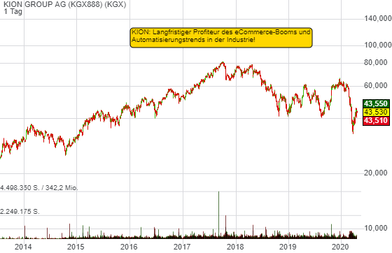 Unter den zyklischen Aktien hat KION eine große Chance für ein mittelfristiges Comeback in Richtung der Höchstkurse. Dafür gibt es folgende drei Gründe. Erstens, die Pandemie wird die Penetration des eCommerce vorantreiben. Schon jetzt vermeldet DHL ein Rekord-Paketvolumen von z.T. 9 Mio. Paketen am Tag. Die Distributionsinfrastruktur muss ausgebaut werden, um den Warenumschlag zu steigern und schnellere Lieferungen zu ermöglichen. Kion adressiert diese Kundengruppe mit seinen Intralogistik-Lösungen. Zweitens, bisherige Nischenmärkte mit einer geringen Durchdringungen des eCommerce erheben sich. Das sind der Online-Handel von Medikamenten, Möbeln und Lebensmitteln. Die stationären Retailer müssen ein Online-Business aufbauen. Vor allem aus dem Lebensmittelbereich werden Kroger, WalMart, Edeka&Co. damit fortfahren. Kion kann diesen vollautomatisierte Lager bereitstellen. Drittens, die Pandemie hat die Anfälligkeit der globalen Liefer- und Produktionsketten gezeigt. Diese breiter aufzustellen oder ins Heimatland zurückzuholen, ist wahrscheinlich. Wenn mehr Produktion in Hochlohnländern (Deutschland, Frankreich) stattfindet, geht das nur über eine massive Automatisierung. Das eröffnet für Kion neue Absatzchancen inkl. der lukrativen Wartung.