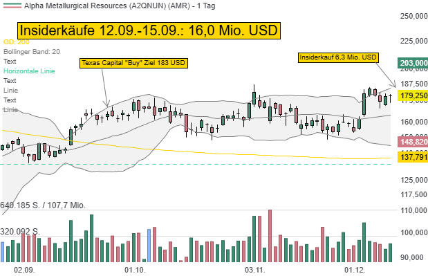 Bemerkenswert sind auch die Insiderkäufe der letzten Monate durch Direktor Kenneth S. Courtis. Er hat bereits vom 12. September bis 15. September insgesamt 108.000 Aktien zu Stückpreisen zwischen 142,64 USD und 154,68 USD für insgesamt rund 16,0 Mio. USD gekauft. Am 08. Dezember hat der Direktor wiederum zu deutlich höheren Stückpreisen von 175,26 USD weitere 36.000 Anteile für insgesamt rund 6,3 Mio. USD erworben. Sein Aktienbestand ist dadurch auf 770.537 Aktien gestiegen.