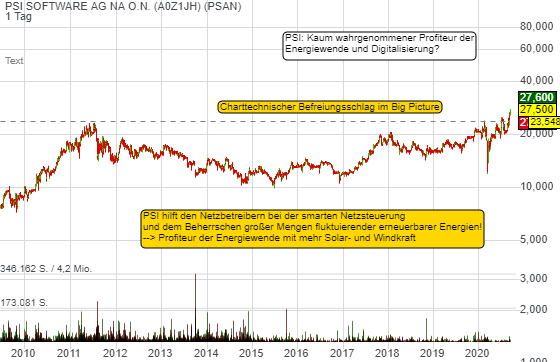 EU-Kommissionspräsidentin Von der Leyen forderte in ihrer heutigen Rede die Treibhausgase in der EU bis 2030 um 55% statt 40% gegenüber dem 1990er Level zu senken. Green Energy Stocks haussieren. PSI Software rückt ins Blickfeld: