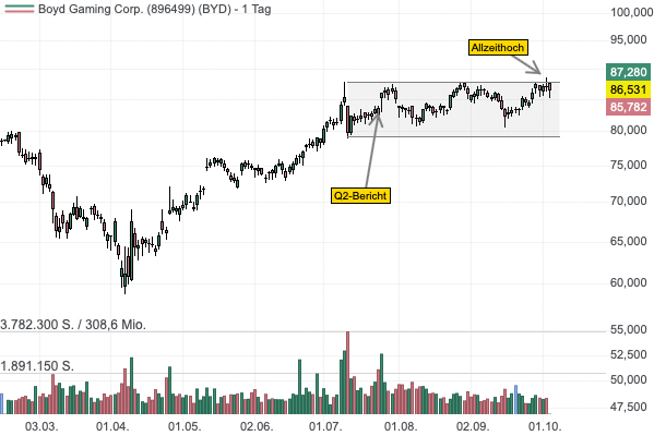 Boyd Gaming verzeichnete im letzten Quartal einen Umsatzzuwachs von 6,9 % auf 1,03 Mrd. USD bei einem EPS-Wachstum von 18,2 %. Laut Management wird weiter kräftig in Wachstum investiert. So wird gerade in Norfolk ein neuer Casino-Komplex gebaut. Daneben bietet die fortlaufende Legalisierung von Online-Glücksspielen und Sportwetten in den USA die Möglichkeit, die digitalen Einnahmequellen über traditionelle Casinos hinaus zu diversifizieren und vom steigenden Interesse an Online-Wetten zu profitieren.