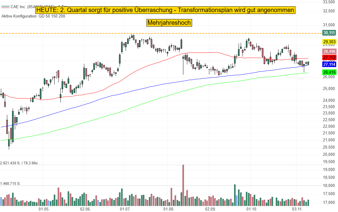 CAE (CAE) gilt als einer der weltweit führenden Anbieter von Trainings- und Simulationslösungen, die insbesondere in der Luftfahrt und dem Verteidigungsbereich für die Aus- und Fortbildung von Piloten, Crew und Technikern angeboten werden. Mit einem neuen Transformationsplan zur Verschlankung des Portfolios soll auch eine bessere Kostenkontrolle erreicht werden. Kurzfristig schreitet die Markterholung langsamer als gedacht voran, weshalb die Investitionsausgaben im laufenden Geschäftsjahr 2026 um 10 % gekürzt werden. Langfristig gibt es jedoch förderliche Rekord-Auftragsbestände für neue Flugzeuge und die steigenden Verteidigungsbudgets der NATO-Staaten.