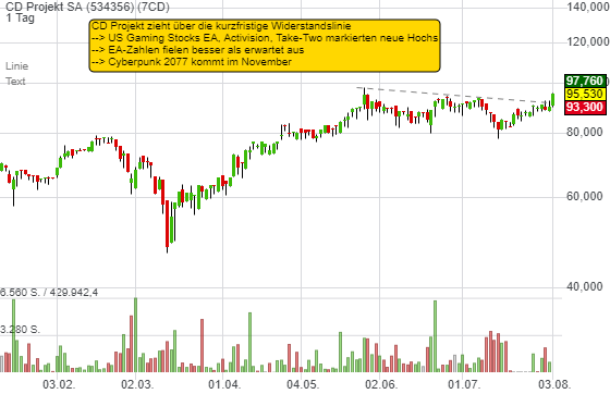 Heute absolviert der Spieleanbieter CD Projekt - bekannt für The Witcher - den Ausbruch über die kurzfristige Widerstandslinie. Warum könnte die Aktie weiter durchziehen?