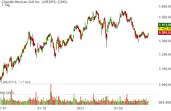 Im Blick behalten wir heute die Aktie von Chipotle Mexican Grill (CMG). Denn dies könnte eine schöne Rebounding-Story mit Fokus auf die angelaufene Re-Opening-Story in den USA werden. Zumal Raymond James heute sein Rating von Outperform auf Strong Buy ändert und das Kursziel von 1.8000 USD bestätigt.