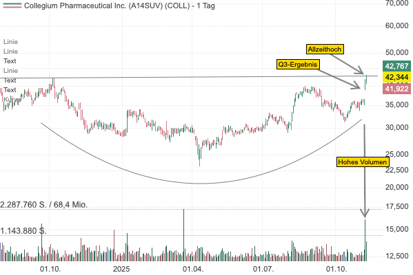 Die Aktie eröffnet nach den Q3-Zahlen mit einem Gap-Up und dürfte nun über den Widerstand bei 40 USD ausbrechen können. (COLL)