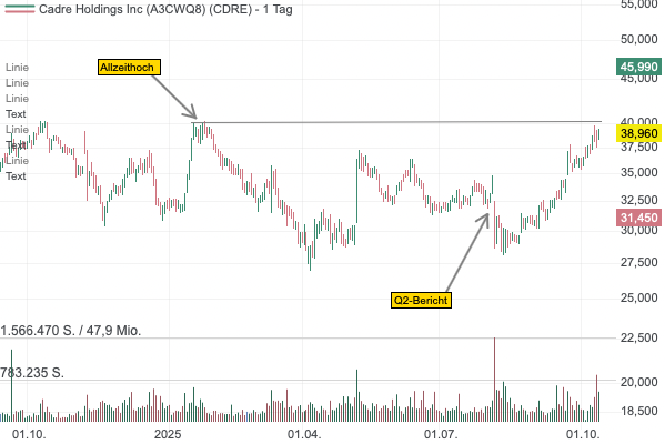 Der Q2-Bericht hatte zunächst zu einem Abverkauf geführt. Inzwischen notiert die Aktie wieder am Allzeithoch und könnte zeitnah die Base nach oben verlassen (CDRE)