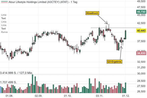 Atour Lifestyle aus China ist ein Hotelkettenbetreiber, den ich im Tenbagger-Forum schon häufig thematisiert habe und der weiterhin mit starkem Wachstum überzeugt. Am 25. November hat das Unternehmen seine Q3-Zahlen vorgelegt, die sowohl beim Umsatz als auch dem Gewinn deutlich über den Erwartungen lagen, wobei der Umsatz YoY um 35 % gesteigert wurde.