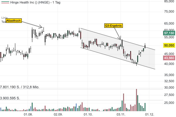 Die Story ist, dass Muskel-Skelett-Erkrankungen das US-Gesundheitssystem mit knapp 1,3 Bio. USD belasten. Die Verbraucher können allein mit dem Smarthone und KI-gestützter Erkennungsfunktionen mit täglich 15-minütigen Übungen die Schmerzen um durchschnittlich 68 % reduzieren. Mitte November wurde ein Aktienrückkaufprogramm über 250 Mio. USD angekündigt.