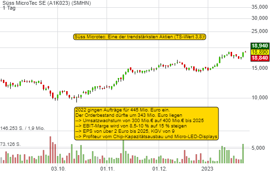 In Deutschland gehört Süss Microtec mit einem TS-Wert von 3,8 zu den trendstärksten Aktien. Sie dürfte sich in einer Neubewertungsphase befinden. Weshalb?