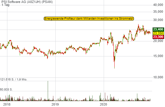 PSI ist eine Aktie, die für Trader wegen der Story interessant wird, sobald der mittelfristige Aufwärtstrend weitergeht.