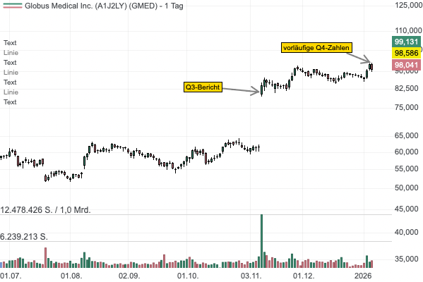 Am 7. Januar gab Globus Medical seine vorläufigen Zahlen für das 4. Quartal bekannt. Und wow, die bilden einen wirklich starken Abschluss des Jahres 2025! Der Umsatz liegt mit 823 Mio. USD deutlich über den erwarteten 778 Mio. USD. Das entspricht einem Umsatzwachstum von 25,2 %. Für das Fiskaljahr 2026 wurde der Ausblick beim Umsatz und Gewinn deutlich angehoben.