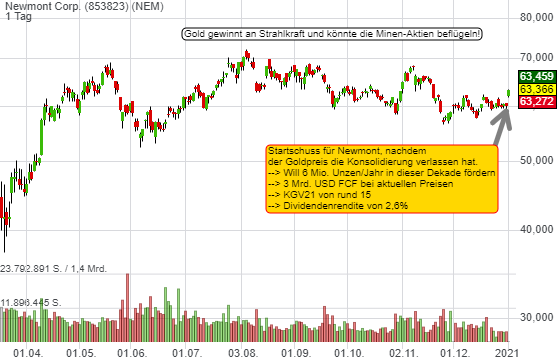 Der Goldpreis hat zum Jahresbeginn ein Zeichen gesetzt und ist aus der mehrmonatigen Konsolidierung ausgebrochen. Prompt reagierten die Goldminen-Aktien positiv. Was spricht für Gold und warum ist Newmont ein Favorit?