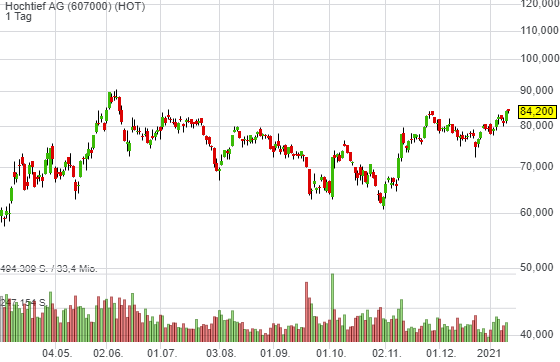 In Deutschland wird bereits eine Verlängerung des harten Lockdowns in Richtung Ostern diskutiert. Dennoch verweilen die Zykliker in einer Favoritenrolle, weil mit einem Reopening eine kräftige Wirtschaftserholung erwartet wird. Ein Favorit ist Hochtief:
