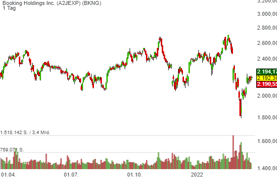 Boocking (BKNG) behalten wir weiter auf der Rebound-Liste. Grund dafür ist die frische Kurszielerhöhung von 2.800 auf 2.900 USD bei einer Buy-Rating-Bestätigung durch Jefferies. Der Analyst bezeichnet die Aktie als Top-Pick im online-Reiseberteich. Gespielt wird explizit die Story rund um das größere Engagement in schnell wachsenden Märkten wie Lateinamerika und asien-Pazifik.