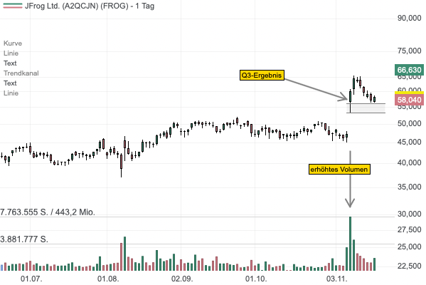 Die Zahlen zum 3. Quartal, die am 6. November vorgelegt wurden waren stark. Der Umsatz stieg um 25,5 % auf 136,9 Mio. USD, während das EPS um 46,7 % auf 0,22 USD anstieg. Der CEO Shlomi Ben Haim sagte: "JFrog hat sich zum Standard für die Entwicklung, Sicherung und Bereitstellung moderner Software entwickelt und bildet das Fundament für die Lieferketten von Unternehmenssoftware im Zeitalter der KI".