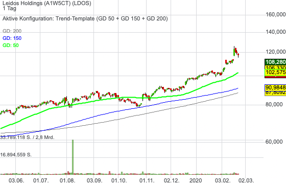 Letzte Woche meldete Leidos für das vierte Quartal besser als erwartete Zahlen. So lag der Gewinn bei 1,51 Dollar pro Aktie (Konsens: 1,34 USD) und der Umsatz bei 2,95 Milliarden Dollar (Konsens: 2,84 Mrd. USD).