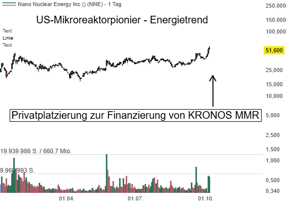 Der US-Technologie- und Energiekonzern NANO Nuclear Energy hat den Abschluss einer überzeichneten Privatplatzierung von 8.490.767 Stammaktien bekannt gegeben, die gemäß den Nasdaq-Regularien "at the market" bepreist wurde. Das Unternehmen erwartet Bruttoerlöse in Höhe von 400 Mio. USD vor Transaktionskosten. Die Mittel sollen in die Entwicklung, den Bau und die behördliche Zulassung des Vorzeigeprojekts KRONOS MMR Energy System fließen, ein modularer, gasgekühlter Hochtemperaturreaktor, der sich derzeit in der Vorantragsphase bei der U.S. Nuclear Regulatory Commission (NRC) befindet. Darüber hinaus plant NANO Nuclear Investitionen in weitere Mikroreaktorprojekte, strategische Akquisitionen sowie in allgemeine Unternehmenszwecke. Nach Angaben des Unternehmens war das Platzierungsvolumen überzeichnet, was auf ein starkes institutionelles Interesse hinweist – ein positives Signal für das Vertrauen in das Geschäftsmodell und die künftige Kapitalstärke. Gleichwohl bedeutet die Ausgabe neuer Aktien eine Verwässerung bestehender Aktionäre, und der Abschluss steht noch unter den üblichen vertraglichen Bedingungen.