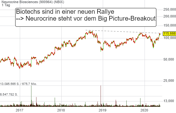 Neue Rallye im Biotechsektor nach 5-jähriger Pause! NEUROCRINE peil Big Picture-Breakout und Umsatzvervielfachung an!