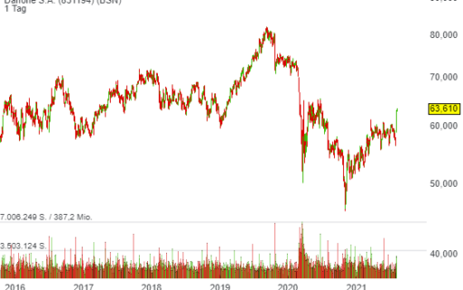 Für positives Aufsehen sorgt nun Aktie von Danone, die Ende der vergangenen Woche vor dem Hintergrund starker Zahlen dynamisch angesprungen war und nun Breakout auf ein neues Jahreshoch schafft. Im Big-Picture...
