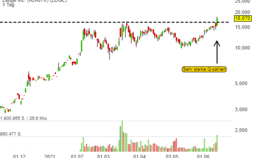 auf die Watchlist kommt heute die Aktie von Zedge (ZDGE), die mit dem gestrigen dynamischen Breakout auf ein neues Jahreshoch einen verspäteten Pivotal-Point auf besser als erwartete Quartalszahlen vom...