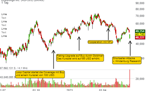 So zumindest die Meinung von Morgan Stanley und Susquehanna, die ihre Buy-Ratings mit den Kurszielen von jeweils 75 USD bestätigt haben. Der negative Impact kam hier mit der Meldung von Hindenburg...