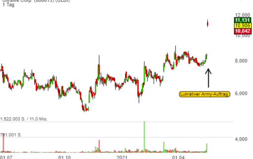 Für Aufmerksamkeit sorgt heute die Aktie des mit nur rund 175 Mio. USD kapitalisierten Konzerns Ultralife (ULBI). Grund dafür ist die Meldung, dass der Konzern einen Vertrag zur Lieferung von seinen...