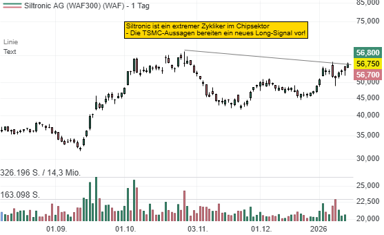 Trotz des enthusiastischen Ausblicks bleibt eine kritische Einordnung notwendig. Als Hersteller am Anfang der Wertschöpfungskette ist Siltronic stark von der Auslastung der Kunden abhängig und spürt Preisdruck sowie schwankende Rohmaterialkosten direkter als Software- oder Design-Unternehmen. Während 2022 das EPS bei über 13 Euro lag, dürfte es 2025 bei -2,61 Euro gelegen haben. Während TSMC mit dem Capex-Schub voranschreitet, muss Siltronic beweisen, dass die Margen trotz hoher Abschreibungen auf die neue Singapur-Fab stabil bleiben. Für Börsianer ist Siltronic eine hochzyklische Wette auf den globalen Chip-Boom, weshalb bevorzugt Trader neuen prozyklischen Long-Signalen folgen.