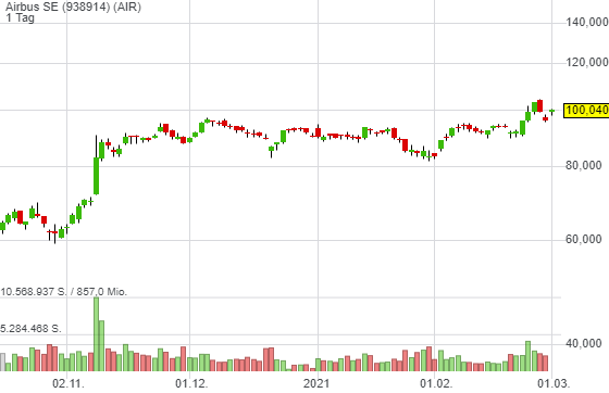 Der Luftfahrt-Verkehr wird wieder an Fahrt aufnehmen. Airbus dürfte bereits 2024 wieder an die Auslieferungsrekorde anknüpfen. Die Aktie sollte nach der zweitägigen Pause nun ihre letzte Woche gestartete Rallye fortführen.