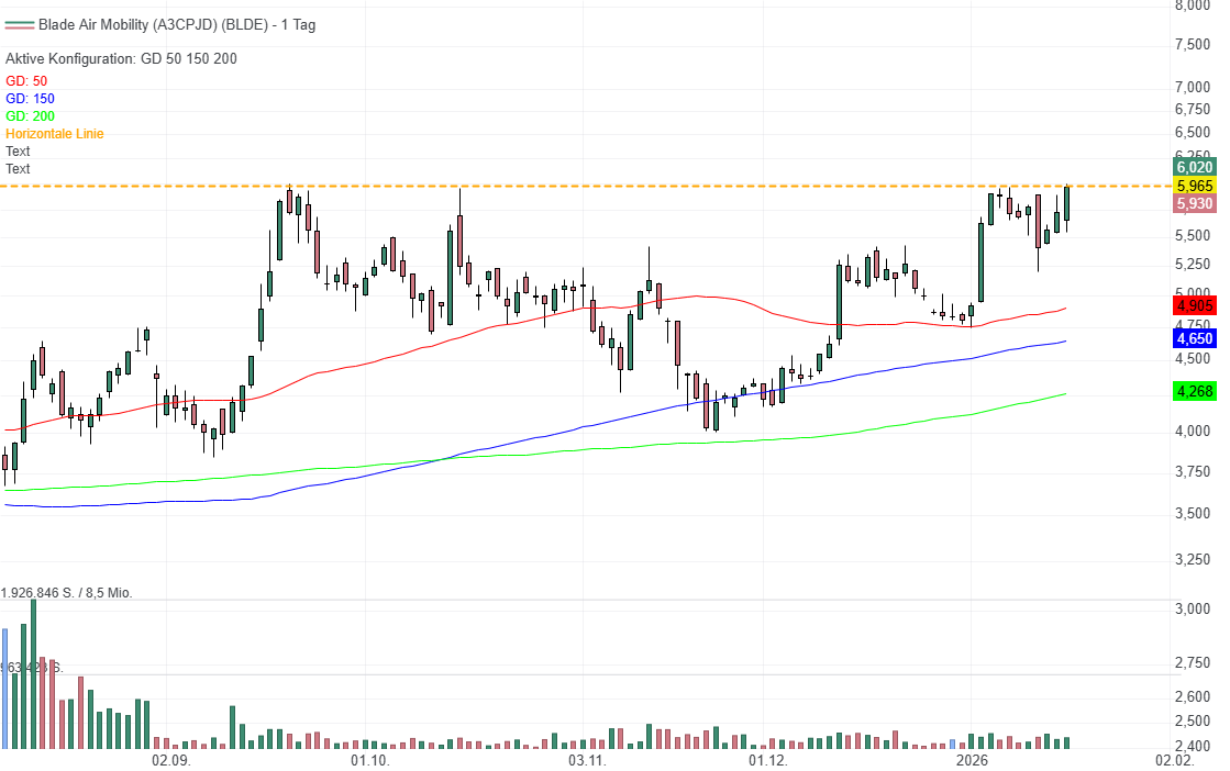 Das organische Wachstum konnte im 3. Quartal von 4 % auf 29 % beschleunigt werden und betrug inklusive Keystone sogar fast 37 %. Die höhere Nachfrage und der zunehmende Einsatz eigener Flugzeuge führten auch ohne Keystone mit einem Wachstum von über 80 % zu einem Rekord-EBITDA und einer Margensteigerung von 10,8 % auf 15,1 %. 2026 wird mit 0,11 USD je Aktie die nachhaltige Nettoprofitabilität erwartet. Die Aktie notiert unmittelbar im Bereich des Mehrjahreshochs und könnte nun zeitnah die Trendfortsetzung einleiten.