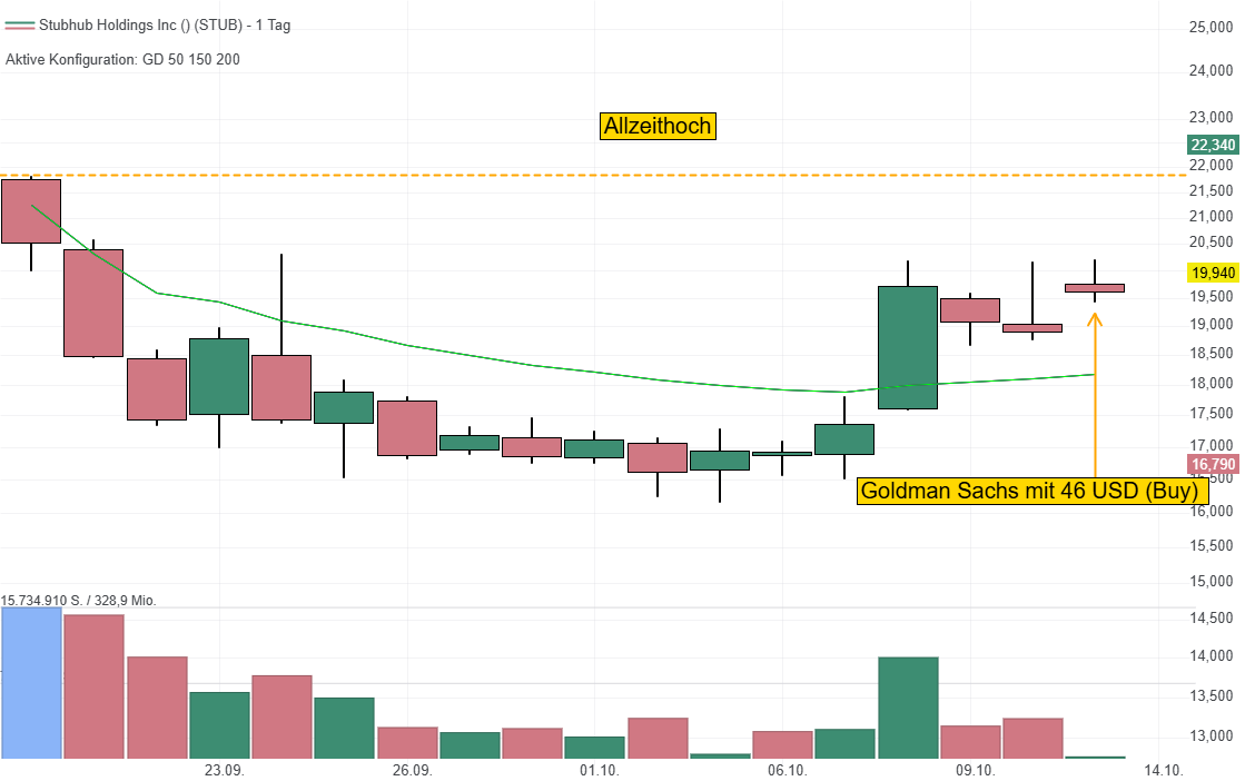 Am 13. Oktober gab es zahlreiche neue Analystenkurziele, angeführt von Goldman Sachs mit 46 USD (Buy), das mehr als Verdoppelungspotenzial signalisiert. Begründet wird dies mit weiteren Marktanteilsgewinnen. Citizens JMP erwartet zudem in den nächsten Jahren eine bereinigte EBITDA-Marge von 30 %. Die BofA und Oppenheimer sehen zudem für 2026 Rückenwind durch Großevents wie eine potenzielle Taylor Swift-Tour und die Fußball-Weltmeisterschaft in Nordamerika. Weiteres Potenzial bietet der Werbemarkt mit potenziell 600 Mio. USD bis 2028, indem Käufer- und Verkäuferdaten für gezielte Werbeanzeigen monetarisiert werden können.