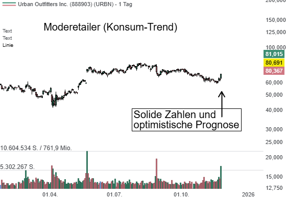 Urban Outfitters präsentiert ein äußerst robustes drittes Quartal und liefert damit eines der bemerkenswertesten Lebenszeichen aus dem US-Bekleidungseinzelhandel während der konsumunsicheren Herbstmonate. Besonders erfreulich für Anleger: Die Retail-Same-Store-Sales steigen konzernweit um 8 %, angetrieben von zweistelligen Zuwächsen der Kernmarke Urban Outfitters. In Europa zeigt sich der Konzern laut Management mit einer besonders dynamischen Entwicklung, während Kostenoptimierungen in Nordamerika zur Margenverbesserung beitragen.