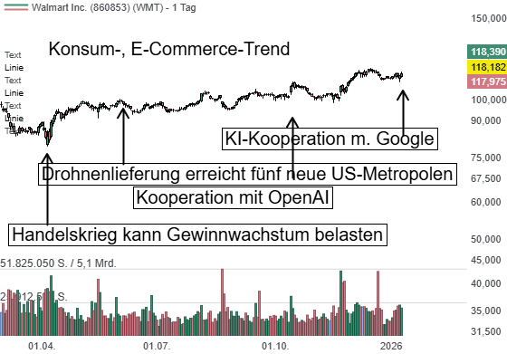 Für Verbraucher steht dabei vor allem Komfort im Vordergrund: Verknüpfen Nutzer ihre Konten, profitieren sie von personalisierten Empfehlungen auf Basis früherer Einkäufe, können bestehende Warenkörbe ergänzen und Vorteile aus Walmart+ oder Sam’s Club Mitgliedschaften nutzen. Ein zentrales Element ist zudem die schnelle Lieferung: Lokal verfügbare Produkte sollen innerhalb von weniger als drei Stunden, teilweise sogar in nur 30 Minuten, zugestellt werden können. Aus Anlegersicht unterstreicht die Initiative Walmarts Ambition, sich als technologiegetriebener Omnichannel-Händler zu positionieren, während Google mit Gemini einen weiteren Schritt in Richtung sogenanntes "agentenbasiertes Commerce" macht – ein Trend, der die Art, wie Konsumenten einkaufen, nachhaltig verändern könnte.