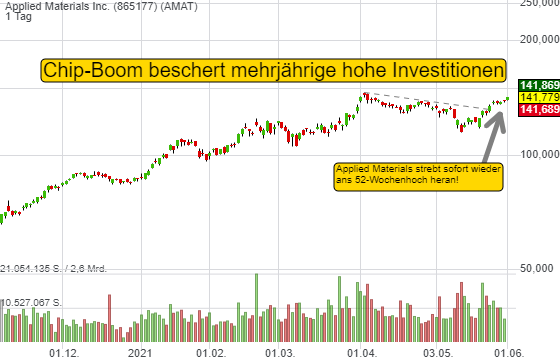 Die Chipausrüster stellen innerhalb des Technologiesektors eine der spannendsten Aktiengruppen dar. Der Marktführer Applied Materials (AMAT) strebt nach einer kurzen Konsolidierung sofort wieder ans 52-Wochenhoch!