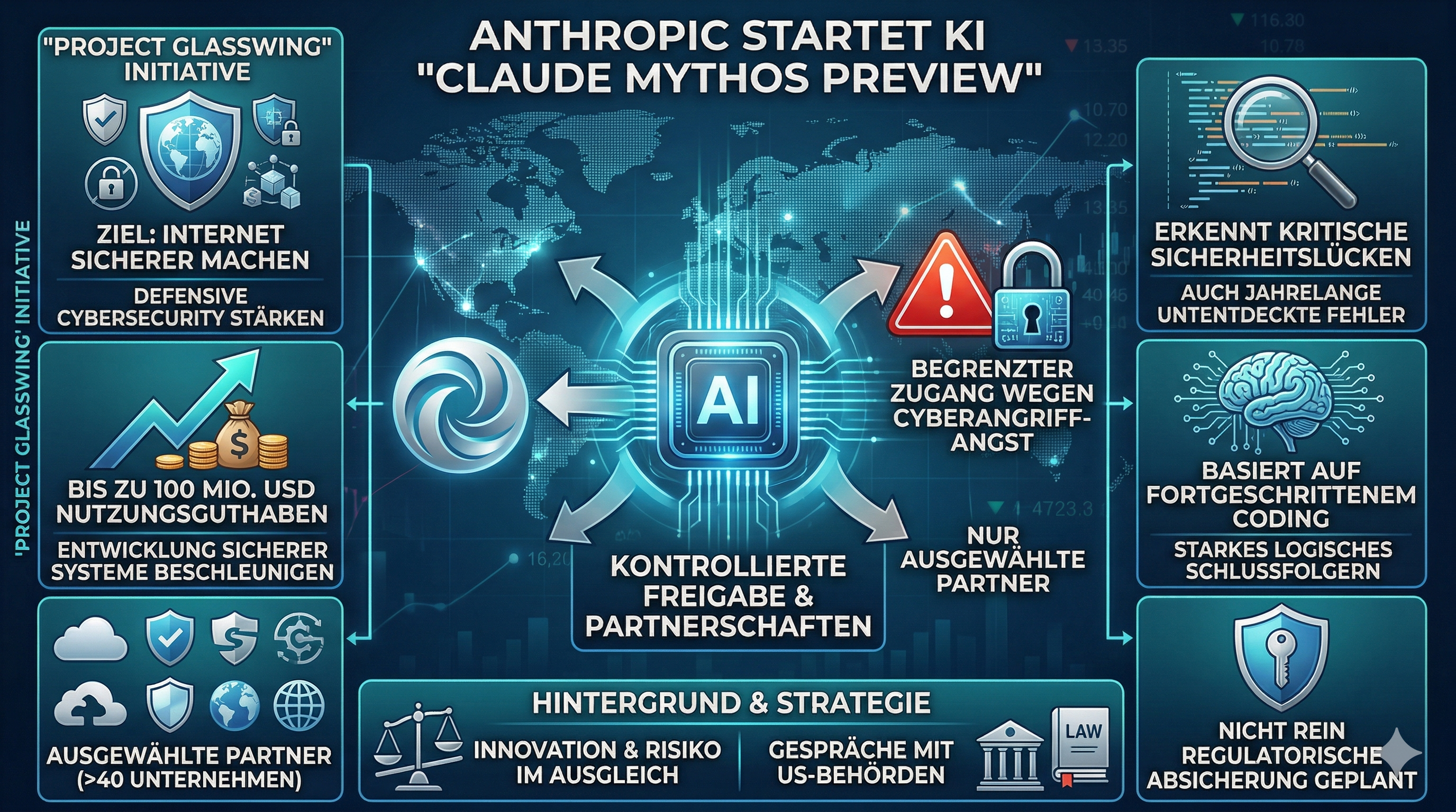 Die Zusammenarbeit läuft unter dem Namen "Project Glasswing". Ziel ist es, defensive Cybersecurity-Anwendungen zu stärken und Unternehmen frühzeitig auf eine neue Generation von KI-gestützten Angriffen vorzubereiten. Anthropic stellt dafür bis zu 100 Mio. USD an Nutzungsguthaben bereit, um die Entwicklung sicherer Systeme zu beschleunigen.