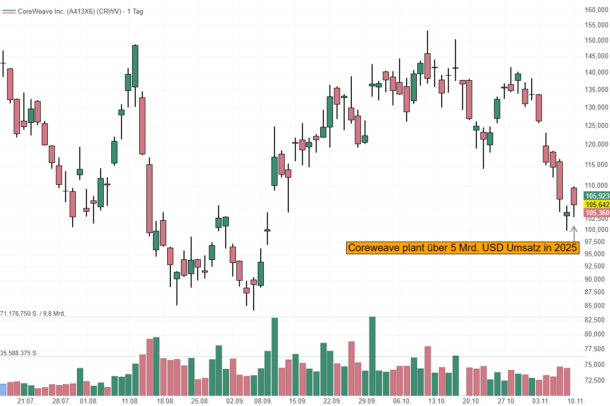 CoreWeave hat im dritten Quartal 2025 ein starkes Wachstum vorgelegt. Der Umsatz stieg um 134 % auf 1,4 Mrd. USD, während das Unternehmen seine Position als zentraler Akteur im globalen KI-Cloud-Geschäft weiter ausbaut. CEO Michael Intrator sprach von einer "äußerst angebotsbeschränkten Umgebung", in der die Nachfrage nach CoreWeaves Plattform die verfügbaren Kapazitäten deutlich übersteigt. Das Auftragsvolumen wuchs im Quartal um 25 Mrd. USD auf insgesamt mehr als 55 Mrd. USD – ein Rekordtempo in der Cloudbranche. Neue Verträge mit Meta, OpenAI und einem weiteren Hyperscaler unterstreichen die strategische Bedeutung des Unternehmens für die KI-Infrastruktur weltweit.