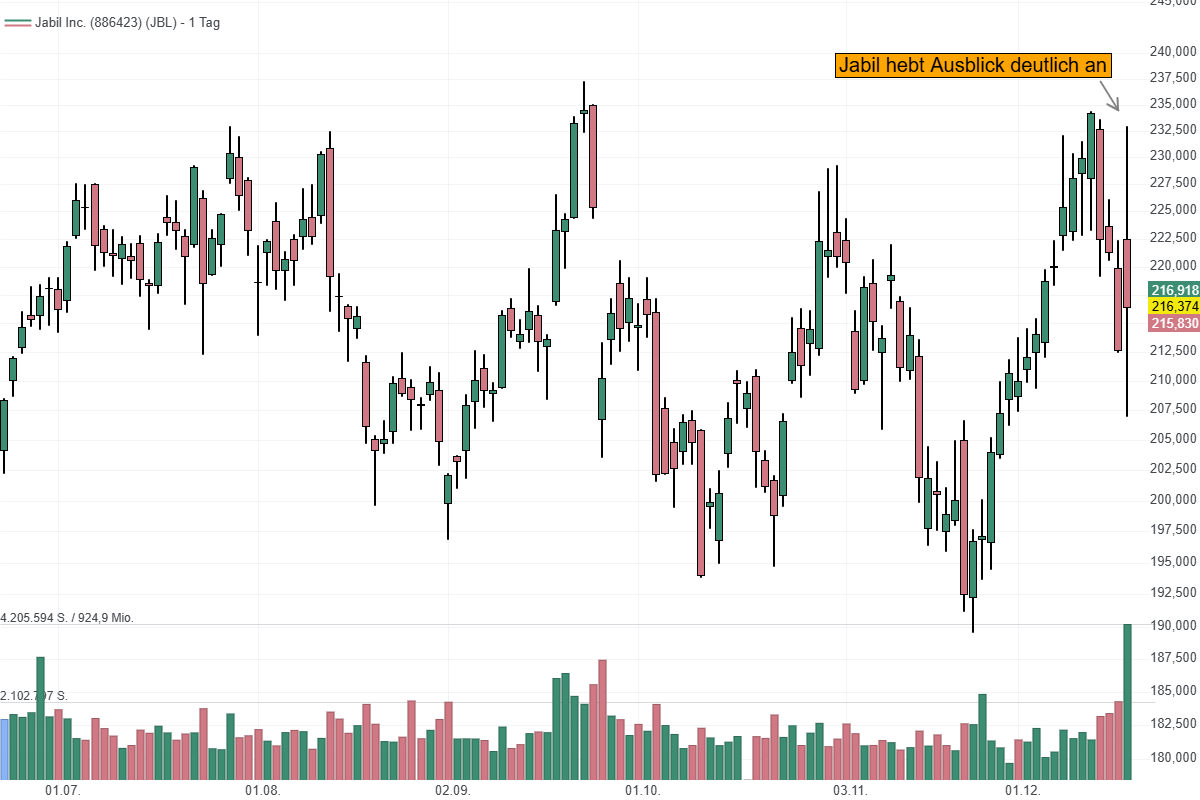 Jabil ist mit einem über den Erwartungen liegenden ersten Quartal in das Geschäftsjahr 2026 gestartet und hat daraufhin seine Jahresprognose angehoben. Der Konzern ist ein weltweit tätiger Auftragsfertiger und Lösungsanbieter, der für Technologie-, Industrie- und Konsumgüterkunden komplexe Elektronik, Systeme und Infrastruktur produziert und entwickelt. Vorstandschef Michael Dastoor zeigte sich sehr zufrieden mit dem Auftakt und verwies auf eine breite operative Stärke über alle drei Geschäftssegmente hinweg. Die Ergebnisse bestätigen die strategische Ausrichtung des Konzerns und sorgen für höhere Visibilität im weiteren Jahresverlauf.