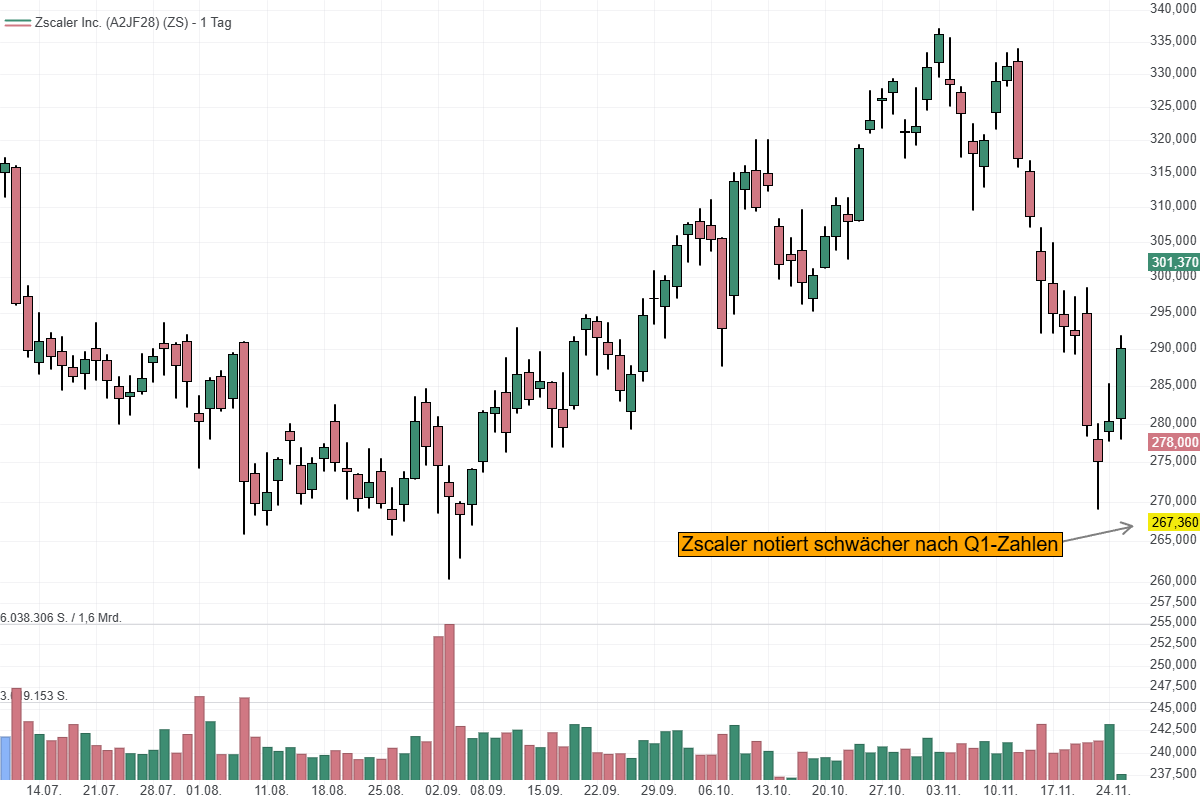 Für das laufende zweite Quartal peilt Zscaler einen Gewinn von 89 bis 90 Cent je Aktie bei rund 797 bis 799 Mio. USD Umsatz an, während der Jahresausblick leicht über den Konsensschätzungen liegt. Trotzdem reagierte der Markt verschnupft: Die Aktie verlor nachbörslich über 7 %, da Anleger in der aktuellen Tech-Phase deutlicheres Wachstum erwarten. Wie schon bei Workday zeigt sich, dass solide Zahlen nicht reichen, wenn der Ausblick nicht mehr bietet als ein bequemes Erreichen der Erwartungen.