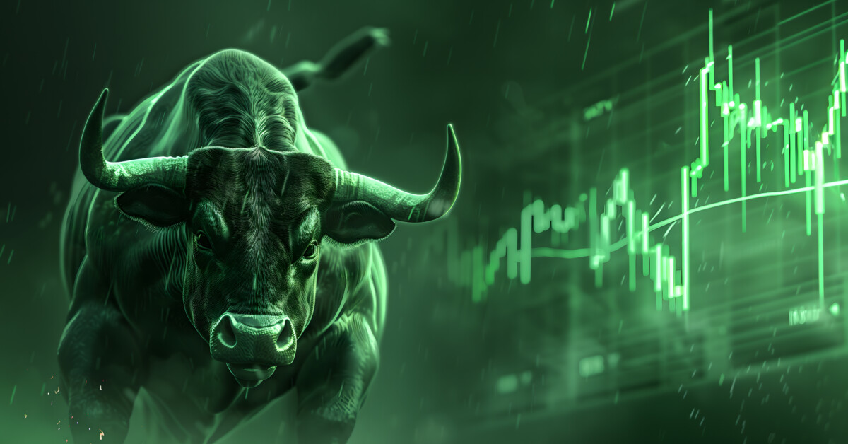 'post_title' => 'The bullish market trend with a bull and charts. Crypto and the stock market are rising showing growth and uptrend.',